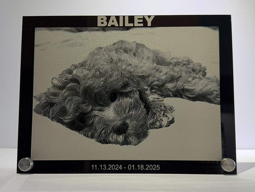 From playful birthdays and family vacations to loving memorials and anniversaries, every moment with your pet is pawfect. Pawfect Engraving transforms your favorite photos—of all your furry or feathered friends—into timeless, laser-etched keepsakes: acrylic portraits, maple leaf tributes, custom shot glasses, and coasters.